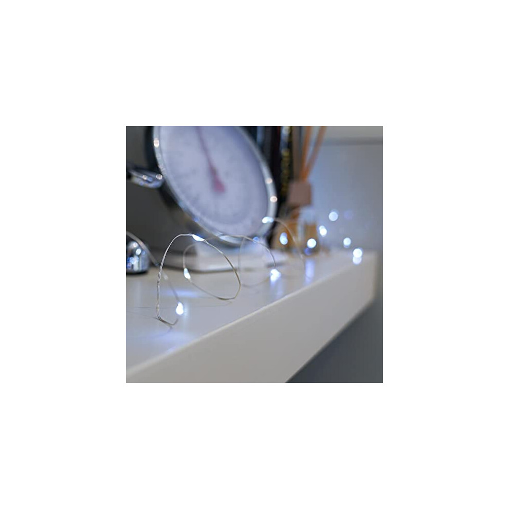 Festive Lights Outdoor Micro Lights - Battery Powered - 50 LEDs - Silver Wire - White