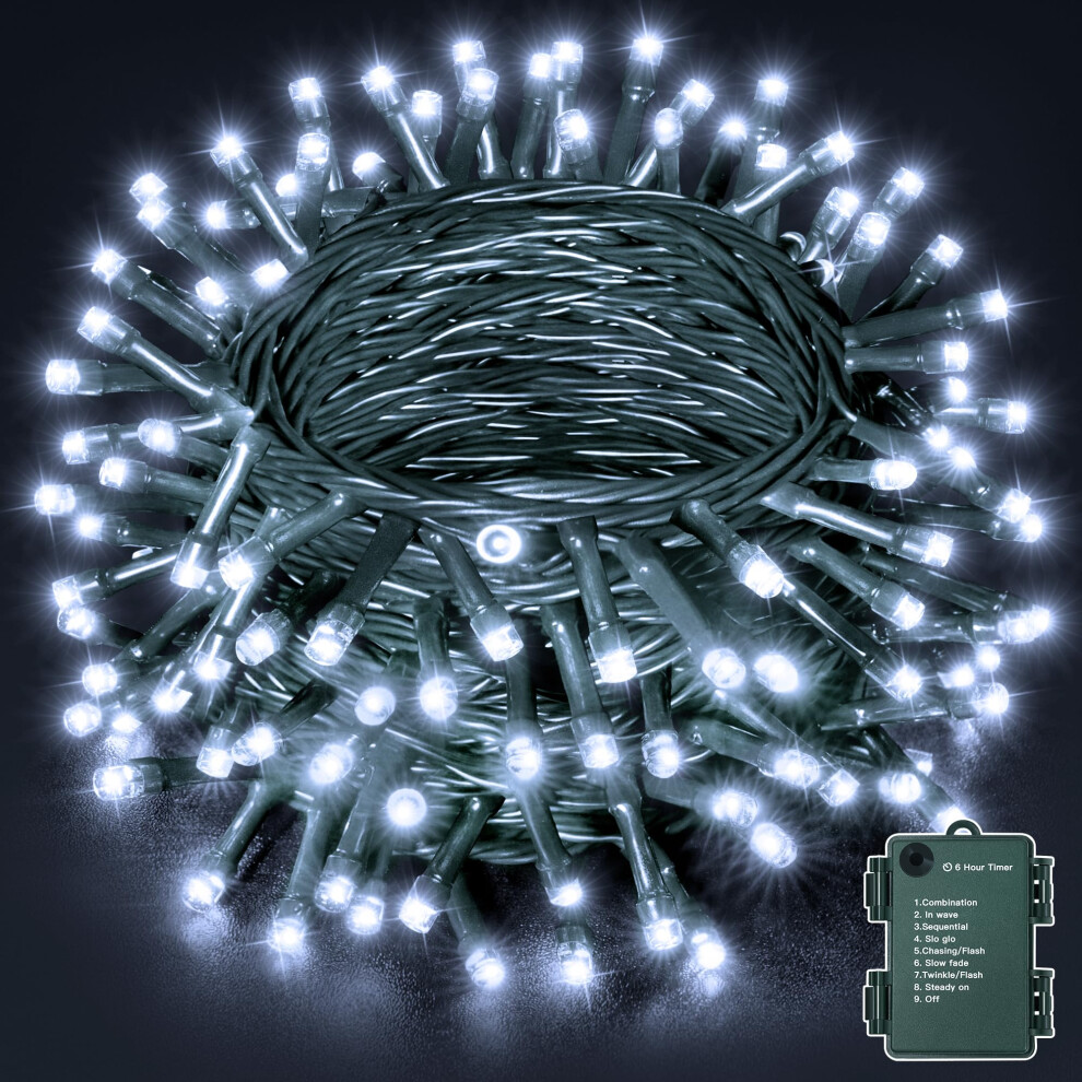 Ollny Fairy Lights Battery Operated, 2 Pack 10m String Lights Battery Powered, Cool White Outdoor Lights Waterproof with 8 Modes/Timer for Indoor Bed