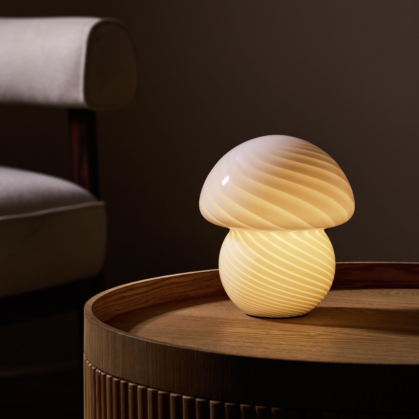 Habitat Mushroom Striped Battery Powered Table Lamp - White