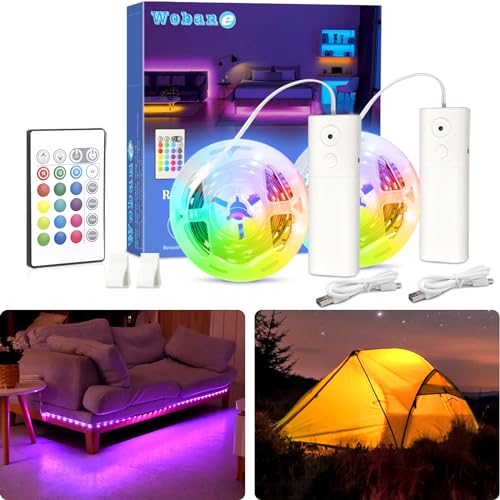 WOBANE Rechargeable RGB LED Strip Lights with Remote Control,2x2m Strip Light Battery Powered,Color Changing Led Lights for Bedroom,Party,Shelf,Sofa,Desk,Game,Holiday,DIY Indoor Decoration,2000mAh