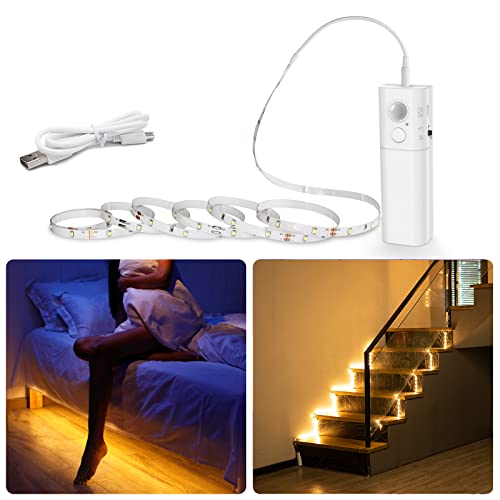 WOBANE Rechargeable Motion Sensor Light,2m Battery Powered LED Strip Lights,Warm White LED Wardrobe Lights,Wireless Closet Light for Bed,Stair,Closet,Pantry,Counter,Cupboard,2700K,60 LEDs,1 Pack