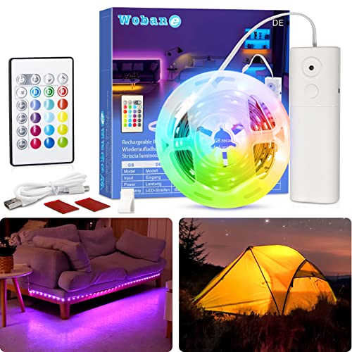WOBANE Rechargeable RGB LED Strip Lights with Remote Control,2000mAh Battery Powered Strip Light,2m Color Changing Led Lights for Bedroom,Party,Shelf,Sofa,Desk,Game,Holiday,DIY Indoor Decoration