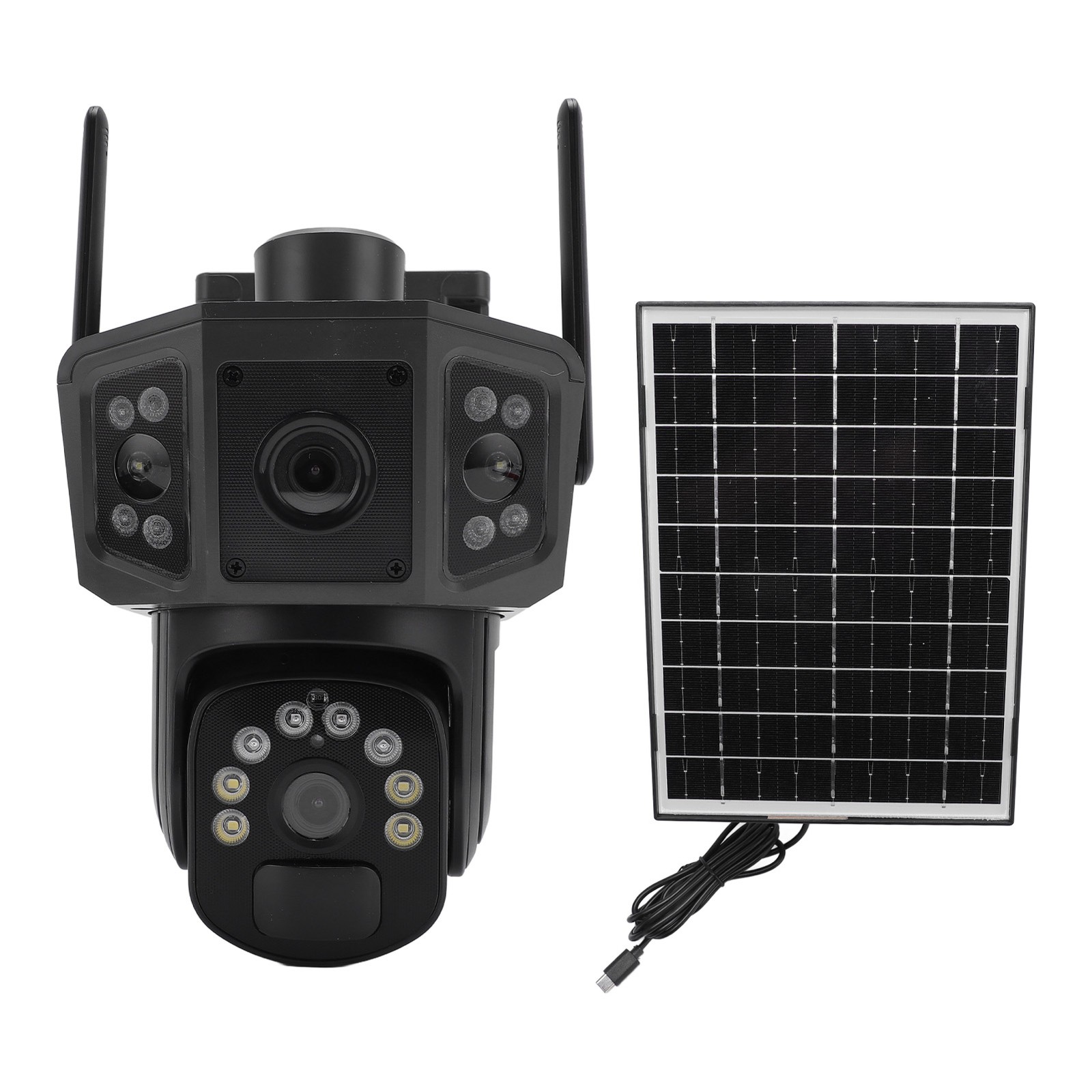4K Wireless Solar Security Camera System with 3 Lenses, 360 PTZ, IP66 Waterproof, Battery Powered Outdoor Surveillance (Black)