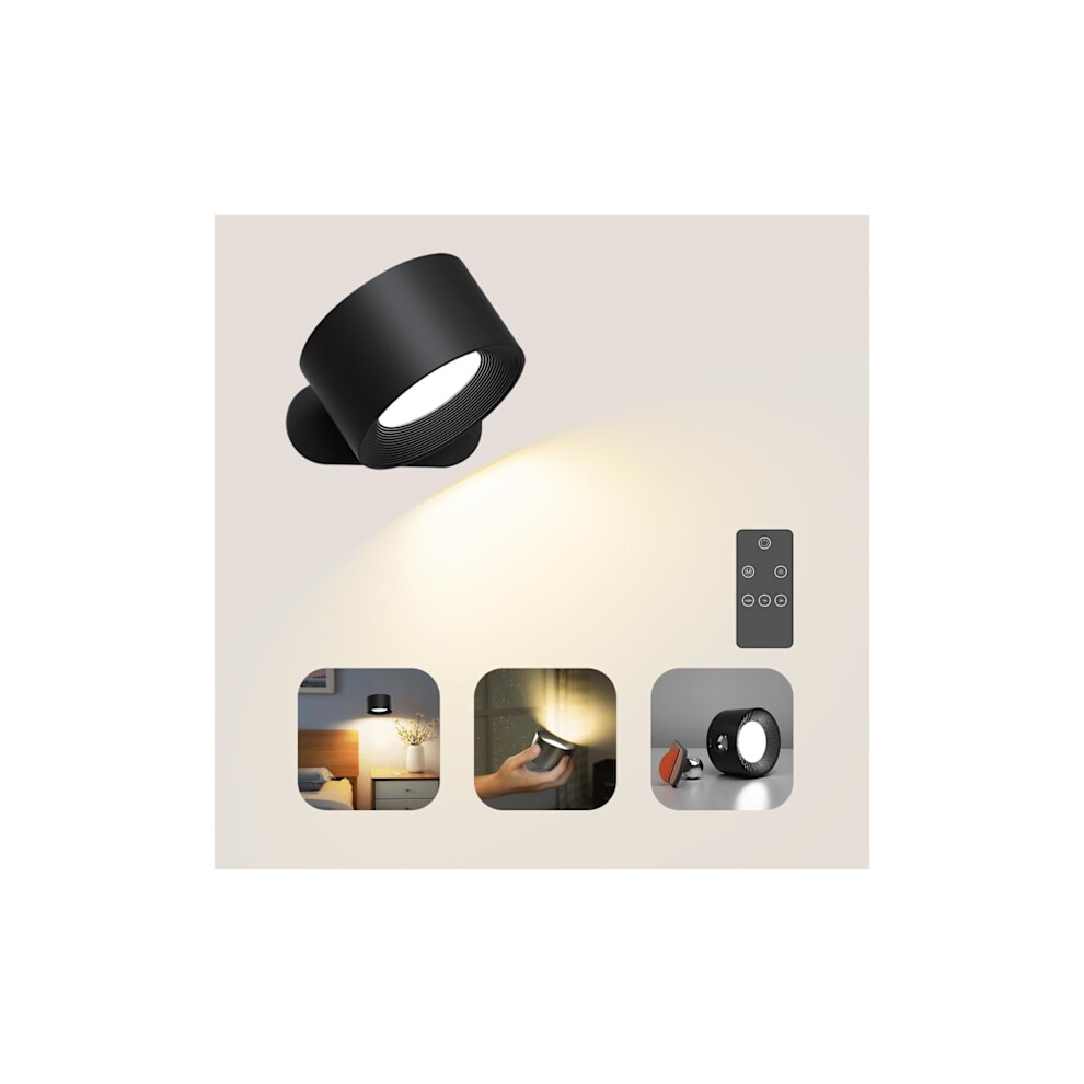Battery-powered wall lamp, 360 adjustable lighting indoor wall lamp, 3 color temperatures, 3 brightness levels touch control Black Remote Control