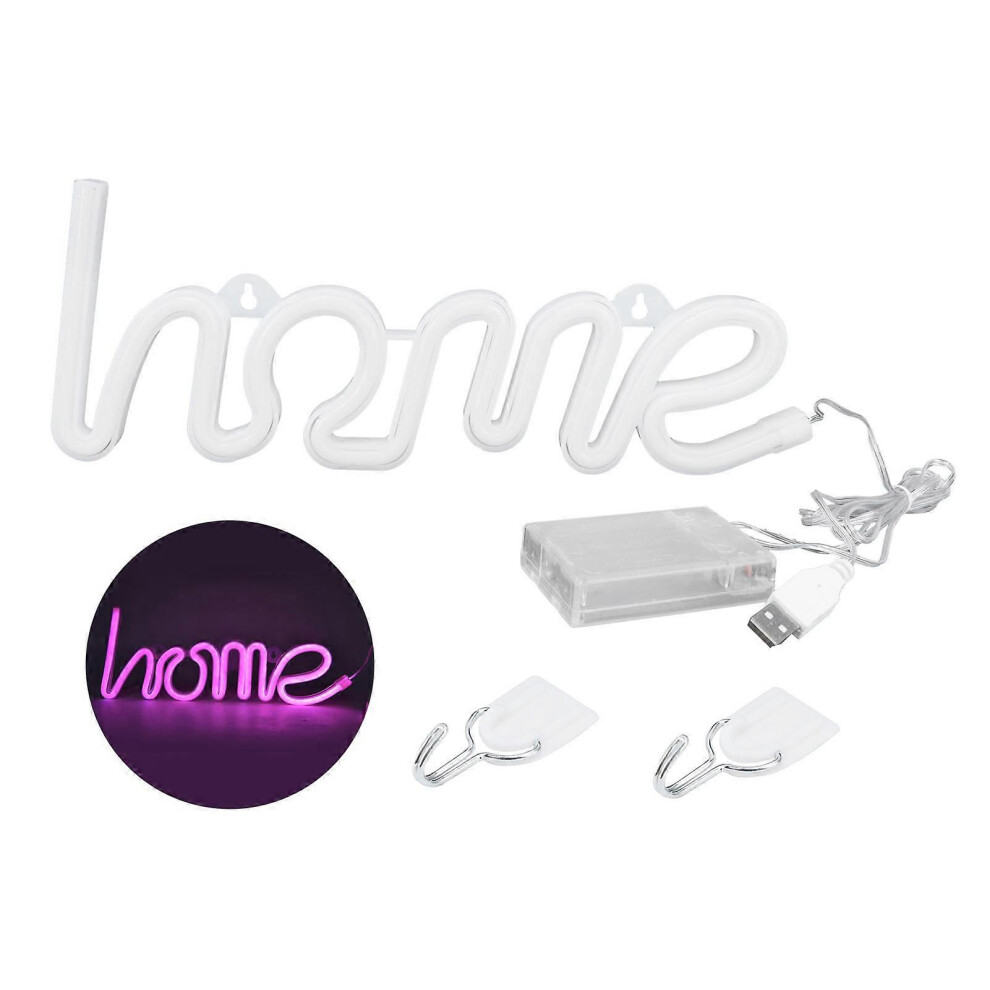 (As show, One size) HOME Neon Sign Light USB/Battery Powered Wall Hanging Lamp for Festive Decoration Pink