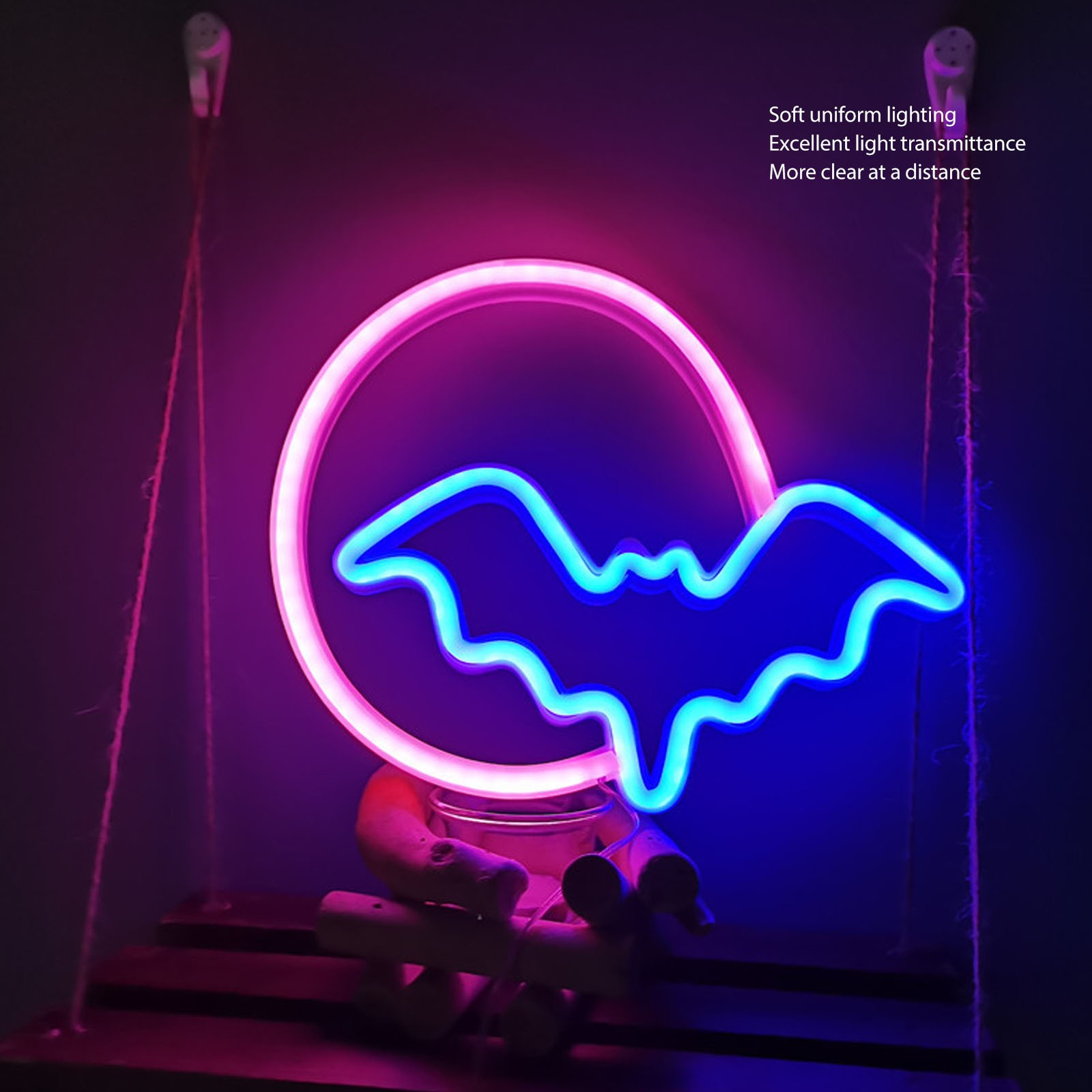 Neon Signs Moon And Bat LED Neon Lights USB Battery Powered For Wall Bedroo SG