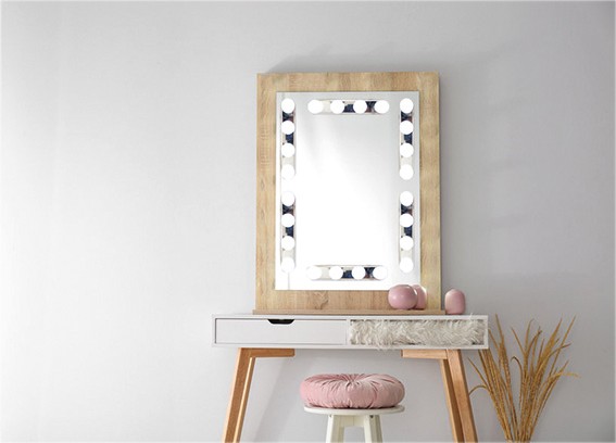 Bathroom Mirror with Lights Rectangle LED Battery Powered Wall Hung Mirror 50cm