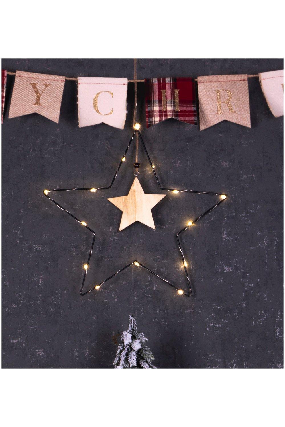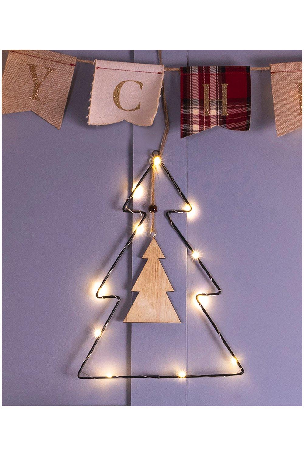 Battery Powered Metal Christmas Silhouette With LED String Lights.