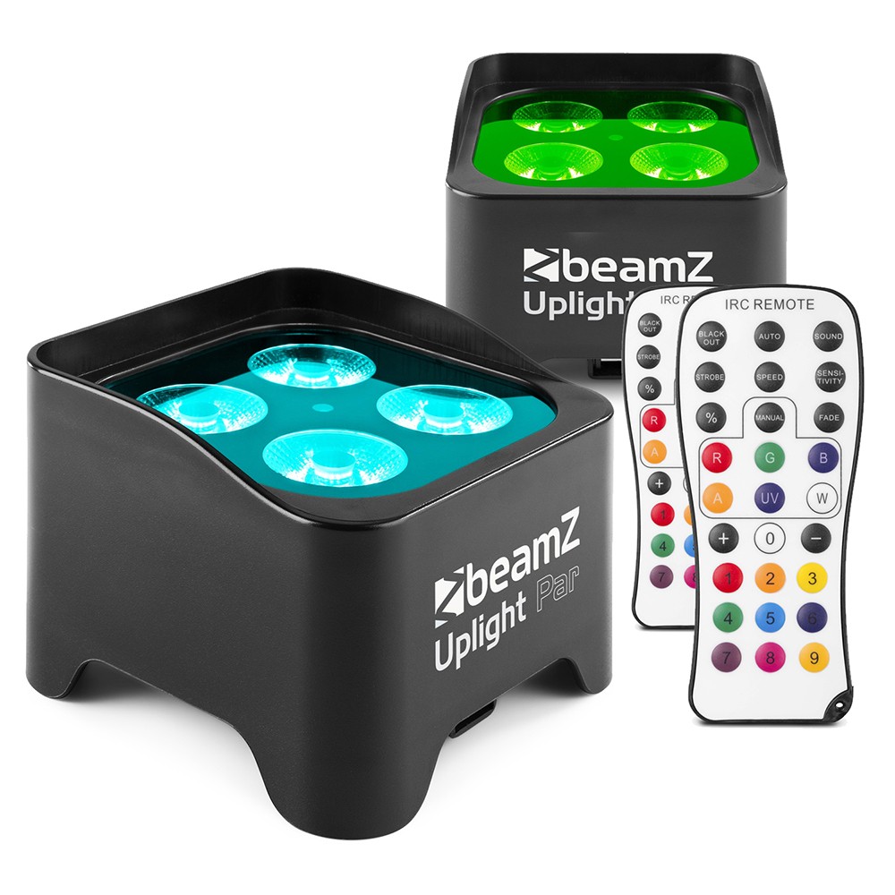 BeamZ BBP90 Wireless Uplighters Package with 2X Battery Powered RGB-UV LED PAR Lights, Rechargeable Cordless Battery Wall Uplighters for Events, Venues, DJ Lighting & Portable Stage Effects