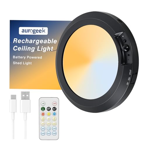 Battery Powered Shed LED Ceiling Light with Remote Rechargeable Cordless Motion Sensor Indoor with 3 Color Stepless Dimming Magnetic Mount LED Wireless Wall Lights for Closet Stairs Shed Garage