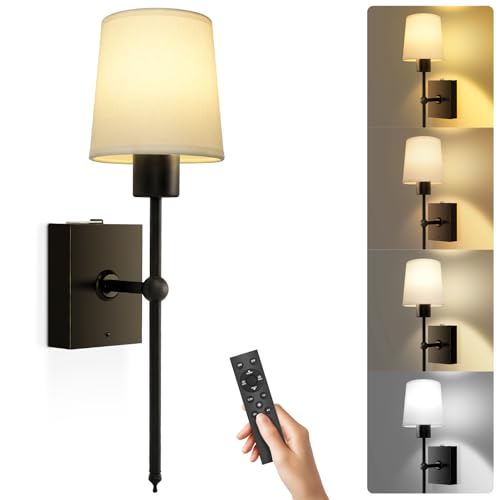 Aiehnid Battery Operated Wall Lights Set of 2,with Color Temperature Dimmable Remote Control,Battery Powered Non Hardwired Wall Lamp,for Bedroom Farmhouse Bedside Reading Light (Black)