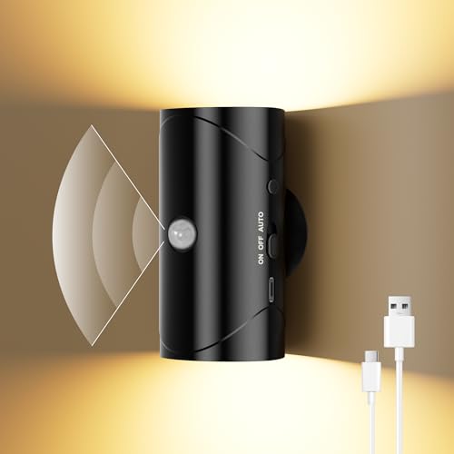 Lysumurl Motion Sensor Night Light, 2600mAh Rechargeable Battery Powered Stick-On Night Lights, Magnetic Wireless Wall Lights with Dusk to Dawn Sensor, Warm White 3000K for Hallway, Bedroom, Stairs
