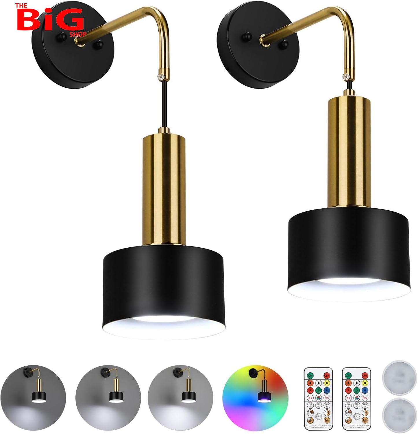 Lightsjoy 2 Pack Battery Operated Wall Lights Rechargeable Wall Sconces Battery Powered Dimmable Wall Light RGB 18 Colors Timing Battery USB Wall Lamp with Remote Control for Bedroom Living Room-Black