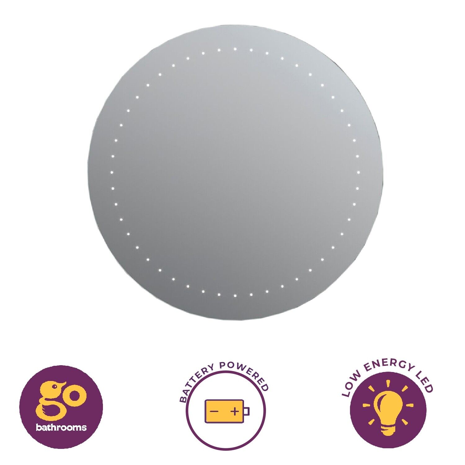 Bathroom Mirror with Lights Round LED Battery Powered Wall Hung Mirror 60cm