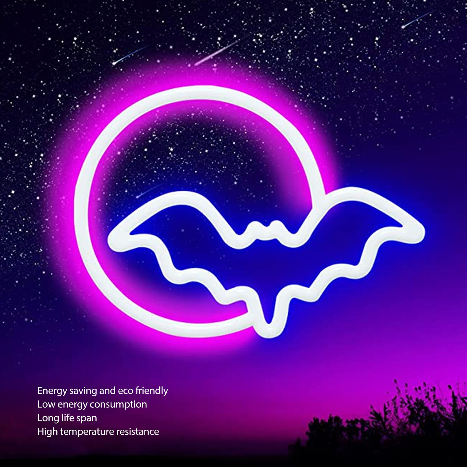 WQHPLMD Neon Signs Moon and Bat LED Neon Lights,USB Battery Powered for Wall Bedroom Bar Halloween Party Decoration