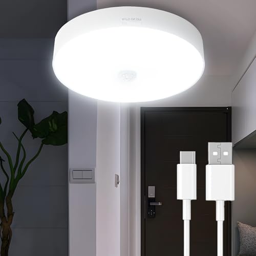 aurogeek Motion Sensor Lights Rechargeable LED: Battery Operated Powered Indoor Ceiling Lights with USB,3 Modes 300LM 7000mAh Night Pir Light Wireless Wall Lights for Lighting Stairs Shed Garage