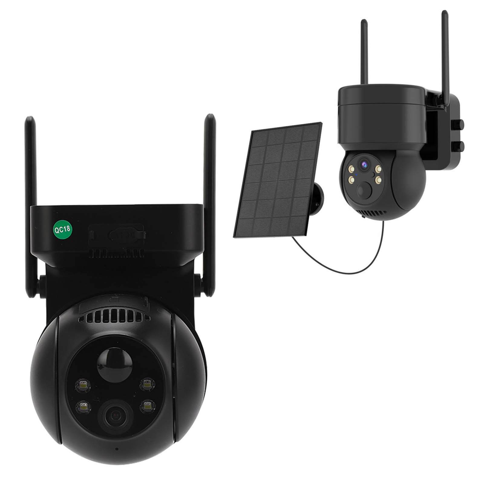 Xega Solar CCTV Outdoor Wireless 2 Pack, 2K PTZ Security Cameras with Solar Panel, Battery Powered Camera 2.4Ghz WiFi, Color Night Vision, 2-Way Audio, PIR Detection Spotlight Siren TF/Cloud IP66