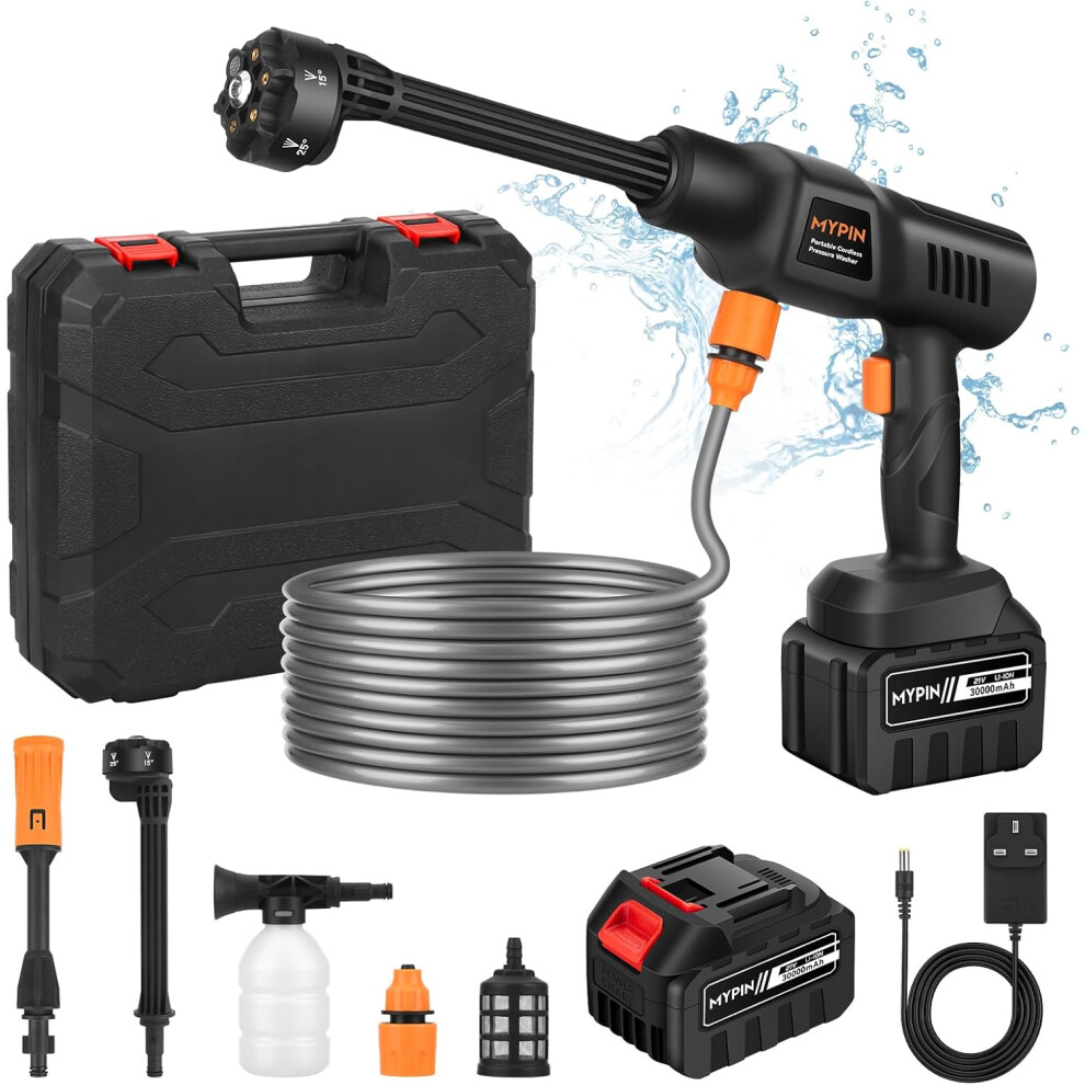 MYPIN Cordless Pressure Washer, Portable Pressure Washers, 6 in 1 Rechargeable Battery Pressure Washer, Cordless Jet Wash with 5M Hose, Cordless Powe