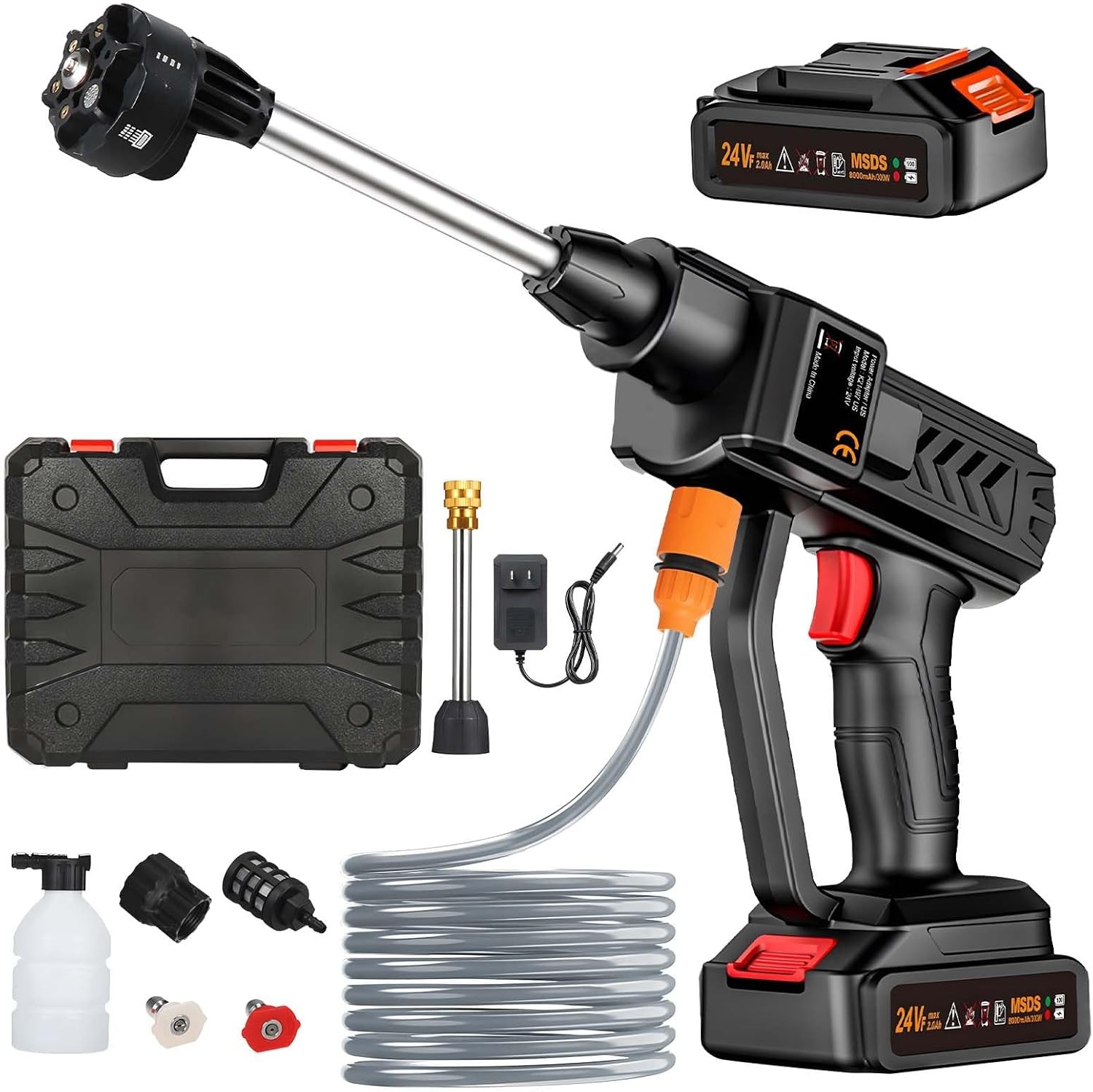 Cordless Pressure Washer Car Washing, Portable Battery Power Washer Sprayer Gun Adjustable Nozzle, 725PSI Hidro Lavadora Portatil Cleaning Machine Patio, Floor, Fence