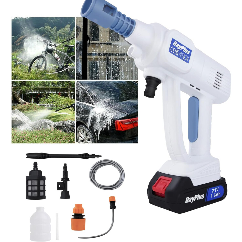(1 Battery) Portable Pressure Washer Pressure Cleaner Jet Car Washer Gun Lightweight with 1500mAh Battery Nozzle Foam Generator