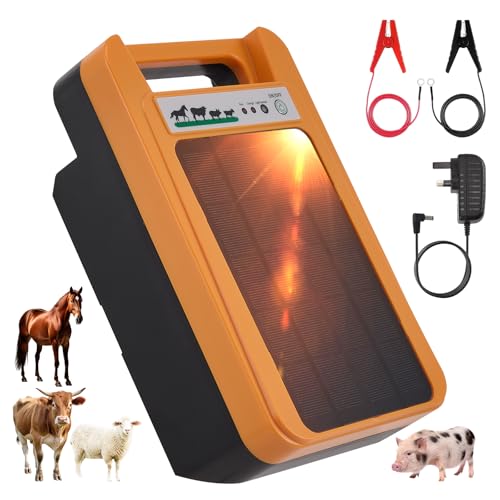 Solar Electric Fence Charger - 0.2J 10 Miles/30 Acres Efficient Energizer Panel Lithium Battery 3W Solar Panel and 10400mAh Rechargeable Battery for Livestock Containment & Predator Control