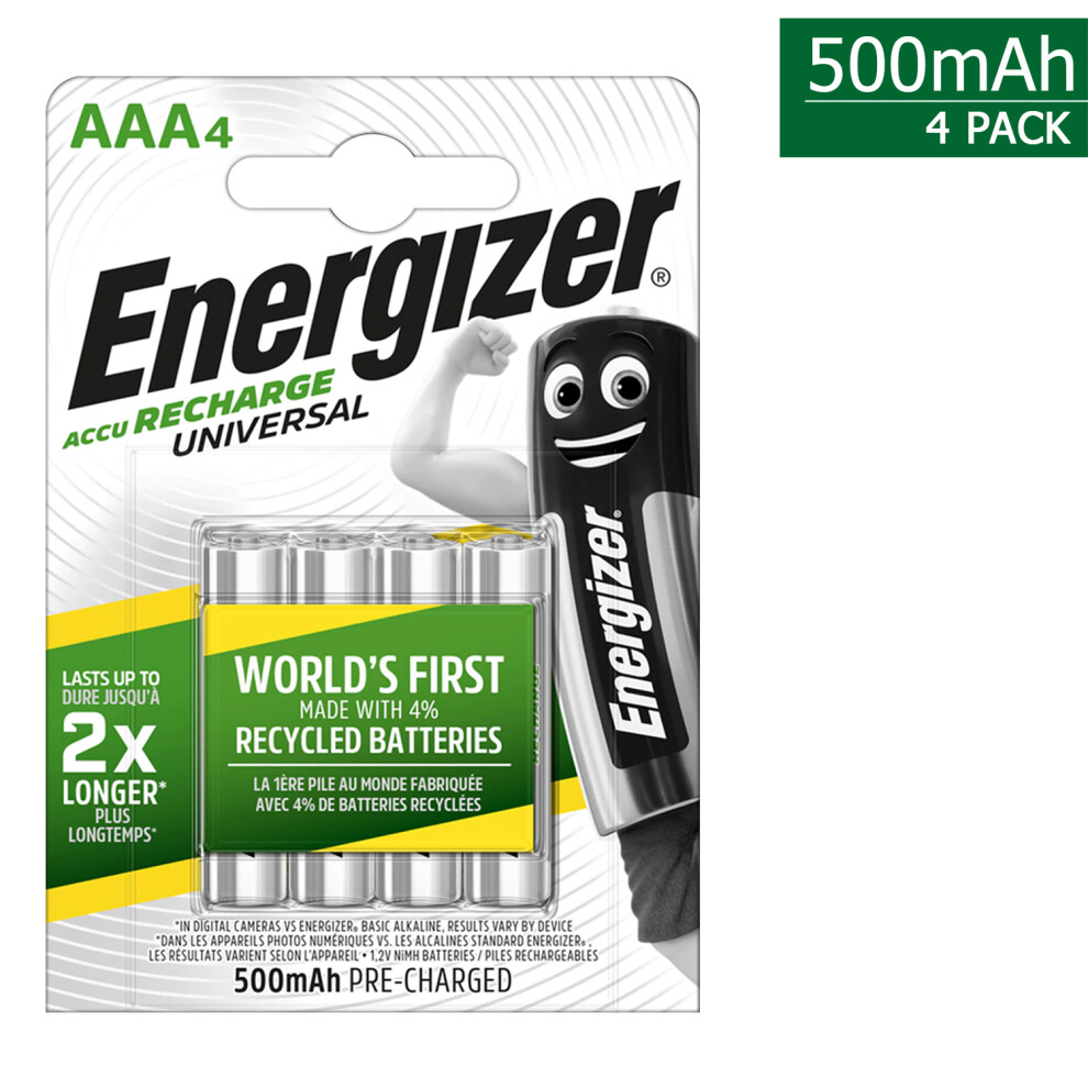 Energizer 638624 Pre-Charged NiMH AAA Battery 500mAh - 4-Pack, Rechargeable for High-Drain Devices