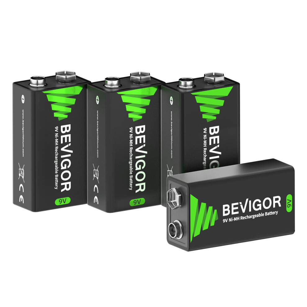 BEVIGOR 9V Rechargeable Batteries, NiMH 2000mWh Long Lasting Power, High Capacity 1200 Cycles 9V Battery for Smoke Detector, Smoke Alarms, Fire Alarm (Pack of 4)