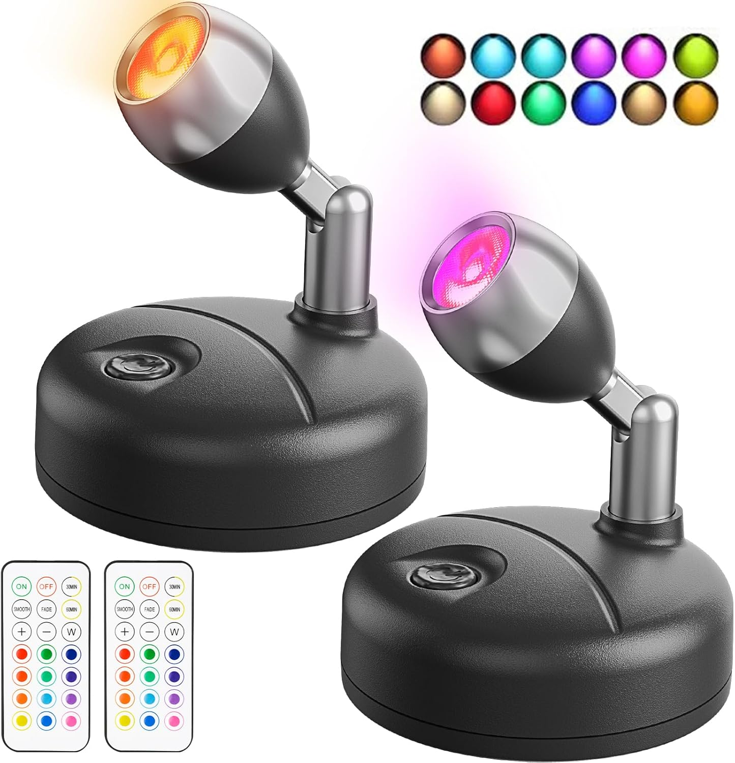Wireless LED Spotlight with Remote Control, Battery Spotlights Indoor, RGB Art L