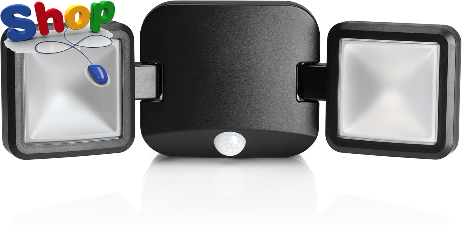 Outdoor Wireless Battery Operated LED Motion Activated PIR Sensor Spotlight Twin