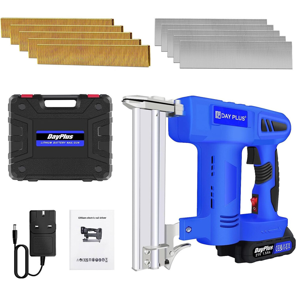 Cordless Brad Nailer 21V Electric Nail Gun Staple Gun for DIY Projects Woodworking with Case Li-ion Battery Staples and Nails