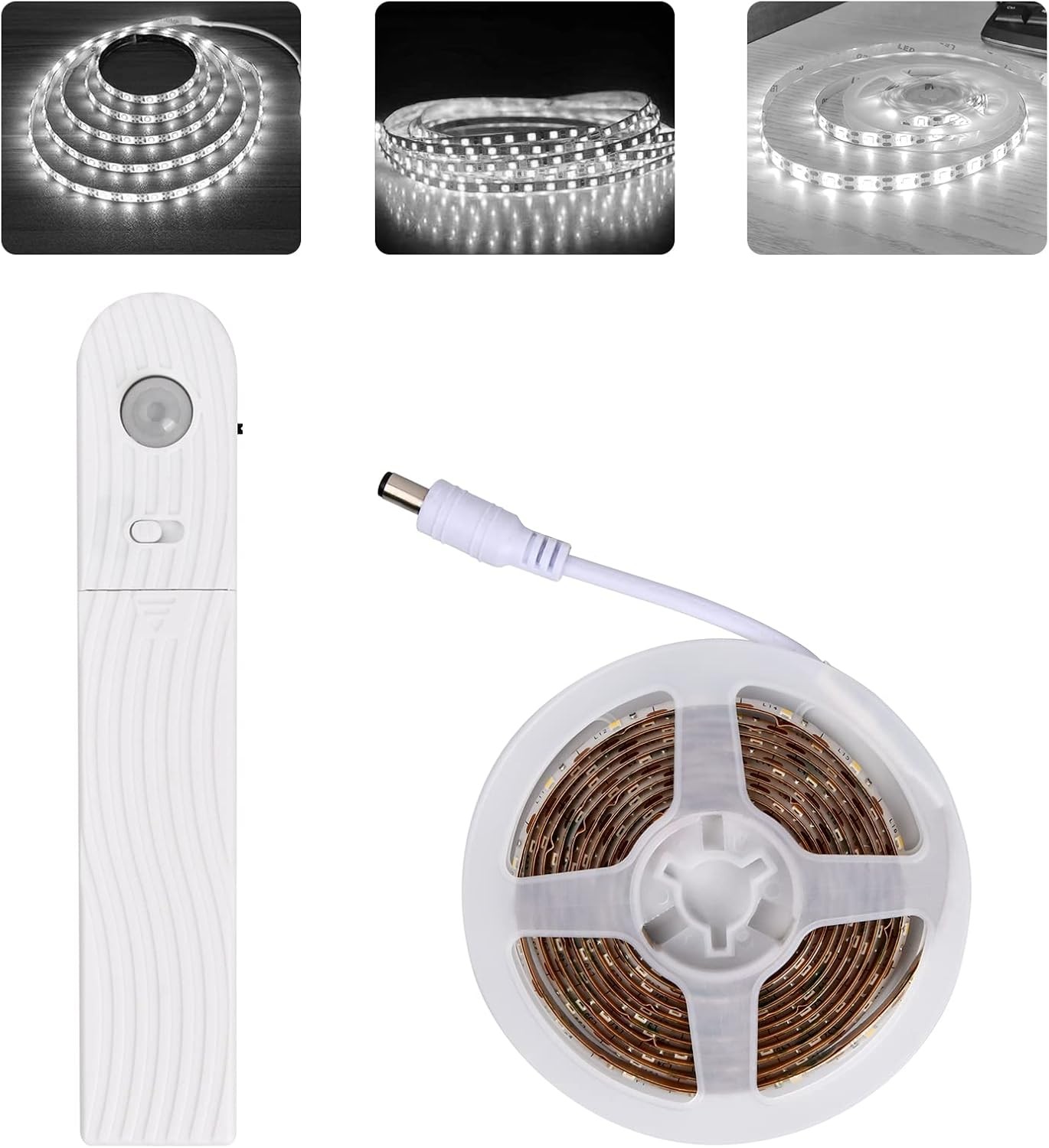 Rechargeable Battery Powered LED Strip Lights, Day Or Night Automatic Modes With Motion Sensor, Multi-Purpose Usage For Under Bed Stairway Cabinet Lig