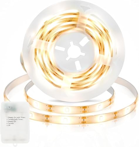 ZAIYW Battery LED Strip Lights, 1M 30 LED Lights Strip with Timer 5 Modes, Waterproof Self-Adhesive Cuttable for Bedroom Mirror Kitchen Cabinet Patio Decor (Warm White)
