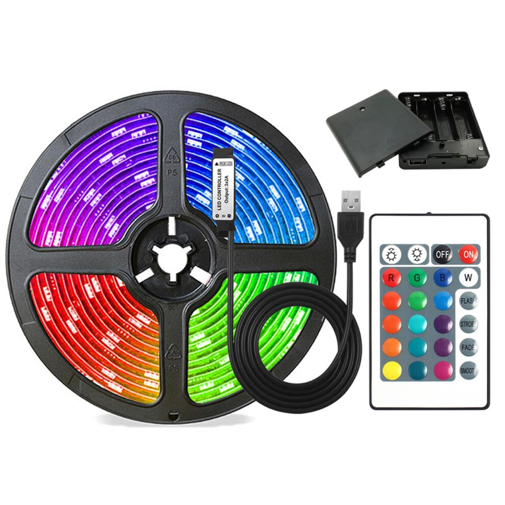 Battery Powered Led Strip Lights with 24-Button Remote Control, RGB 16 Colors,