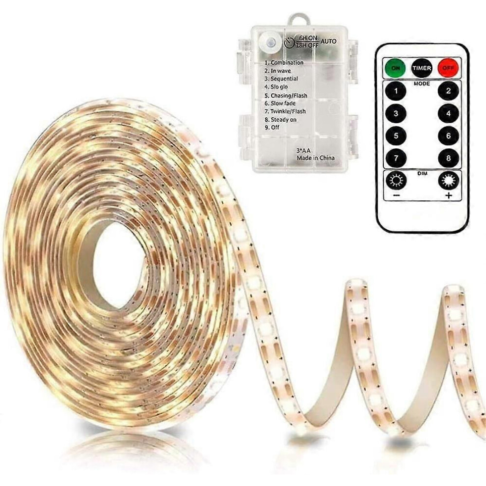 3m Battery LED Strip Lights with Remote Control 90 LED Lights Strip Warm White