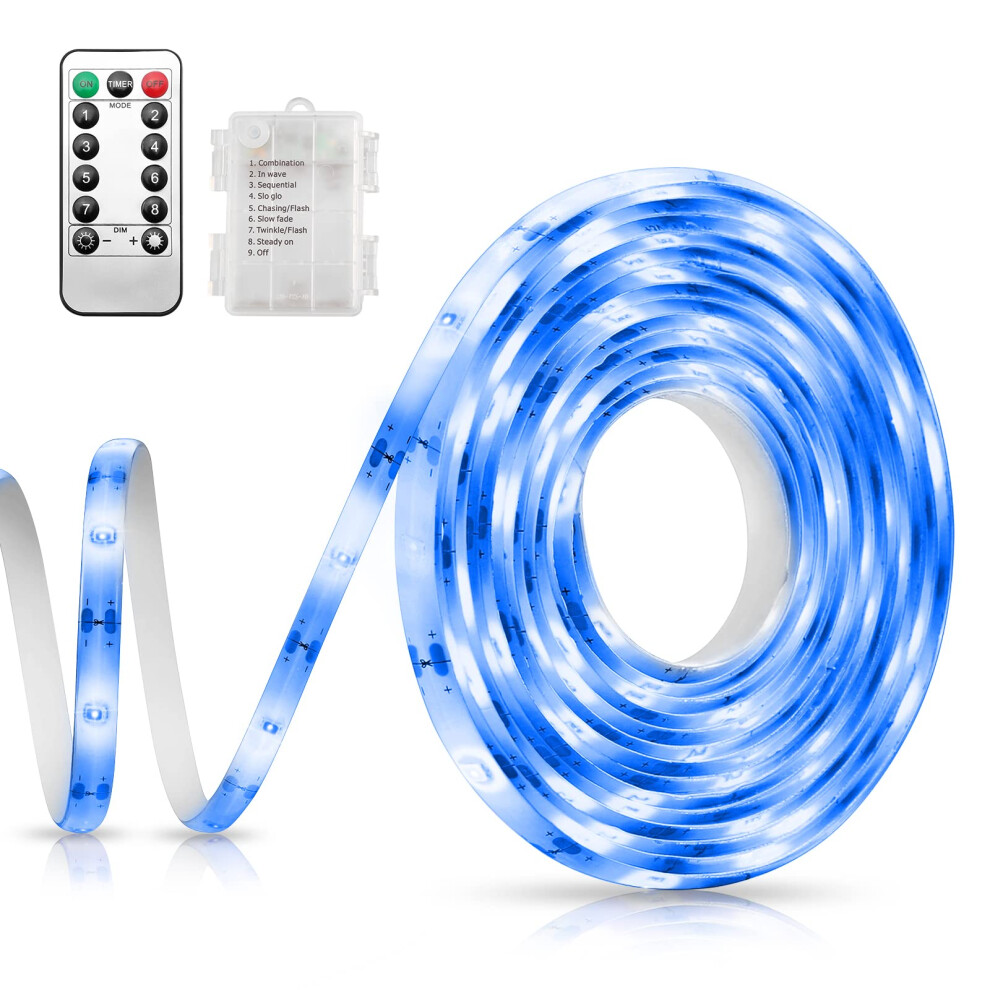 Criacr LED Strip Light, 90 LED Battery Powered LED Strip Lights 3M with Remote Timer, 8 Modes, Self-Adhesive, Dimmable, Waterproof, Cuttable for TV Backlight, Computer, Kitchen, Ceiling Bedroom (Blue)