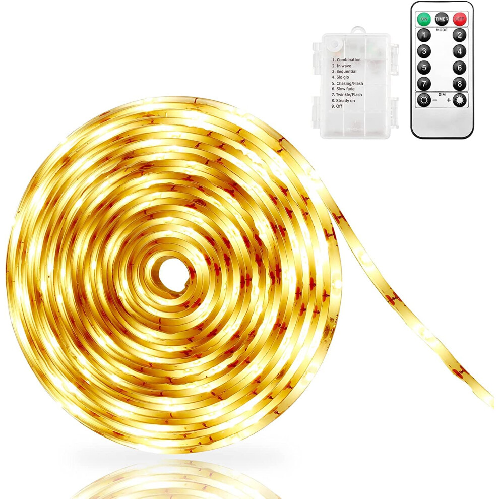 CCILAND 3m Battery LED Strip Lights with Remote Control, 8 Modes, Dimmable, Time