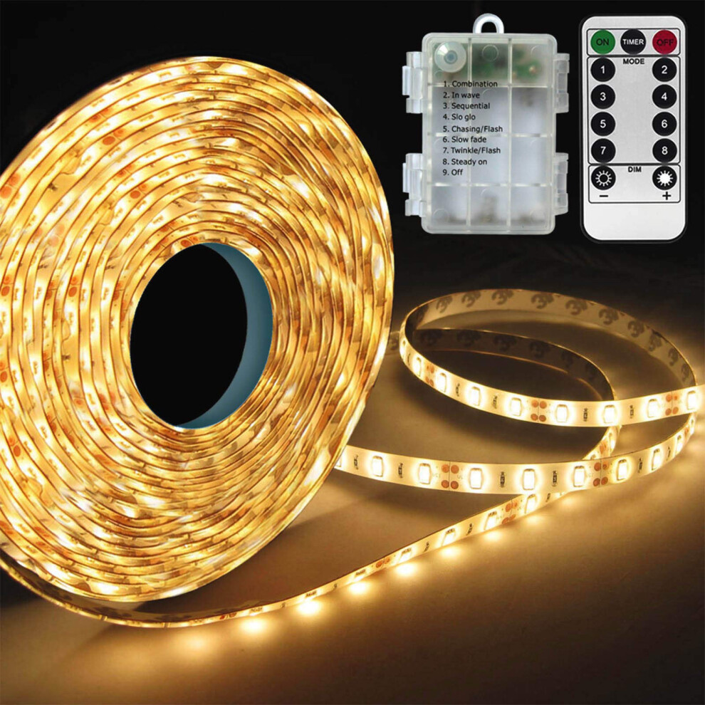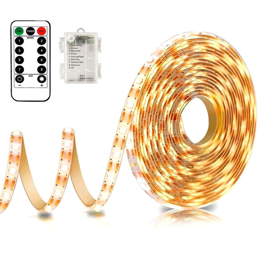 CCILAND 3m Battery LED Strip Lights with Remote Control, 90 LED Lights Strip Waterproof, 8 Modes, Dimmable, Timer, Self-Adhesive, Cuttable for Bedroom Mirror Kitchen Cabinet Patio Decor (Warm White)