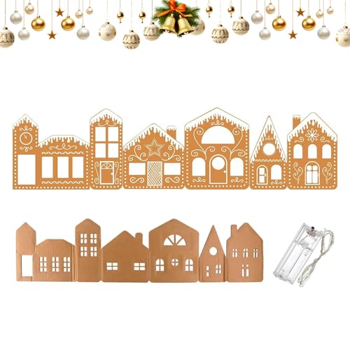 Generisch Christmas Village - Gingerbread House Cardboard Set | Foldable Christmas Houses with Fairy Lights, Battery Operated Cardboard Table Toppers for Displaying Holidays