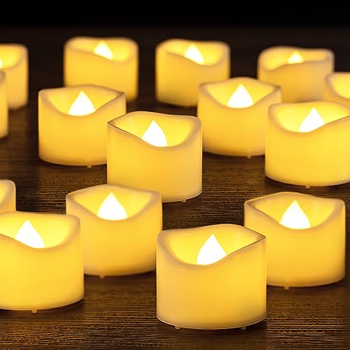 Yakpo 48 Pack 3.8cm x 3cm Tea Lights Candles Battery Operated, Flameless Flickering LED Tealights Electric Realistic Flicker Votive Candles Bulk for Wedding Table Halloween Pumpkin Light Decorations