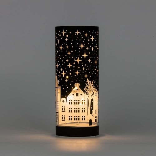 SHATCHI 22cm Christmas Decorated Vase Table Lamp Etched Glass Tube Xmas Deep Blue Cylinder LED Fairy Lights Battery Operated Table Decoration, Village