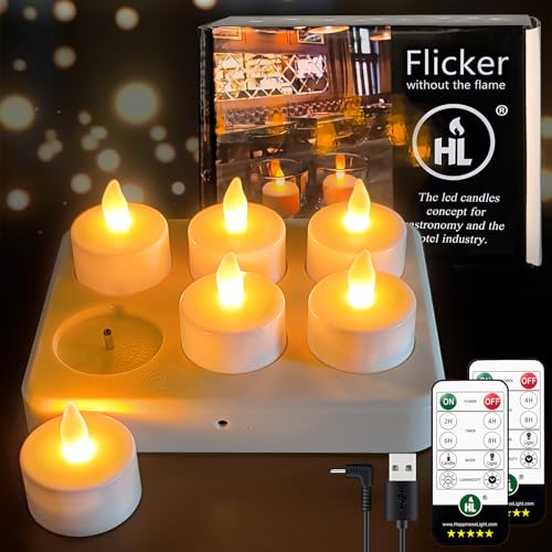 HL Rechargeable Tea Lights Flameless Candles with Remote,Flickering LED Candles with Timer Battery Operated Candles,for Home Seasonal Halloween Decor Flameless Centerpiece Table Decorations,6 Pack