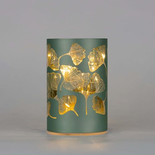 SHATCHI 13cm Christmas Decorated Vase Table Lamp Etched Glass Tube Forest Scene Gold Cylinder LED Fairy Lights Battery Operated