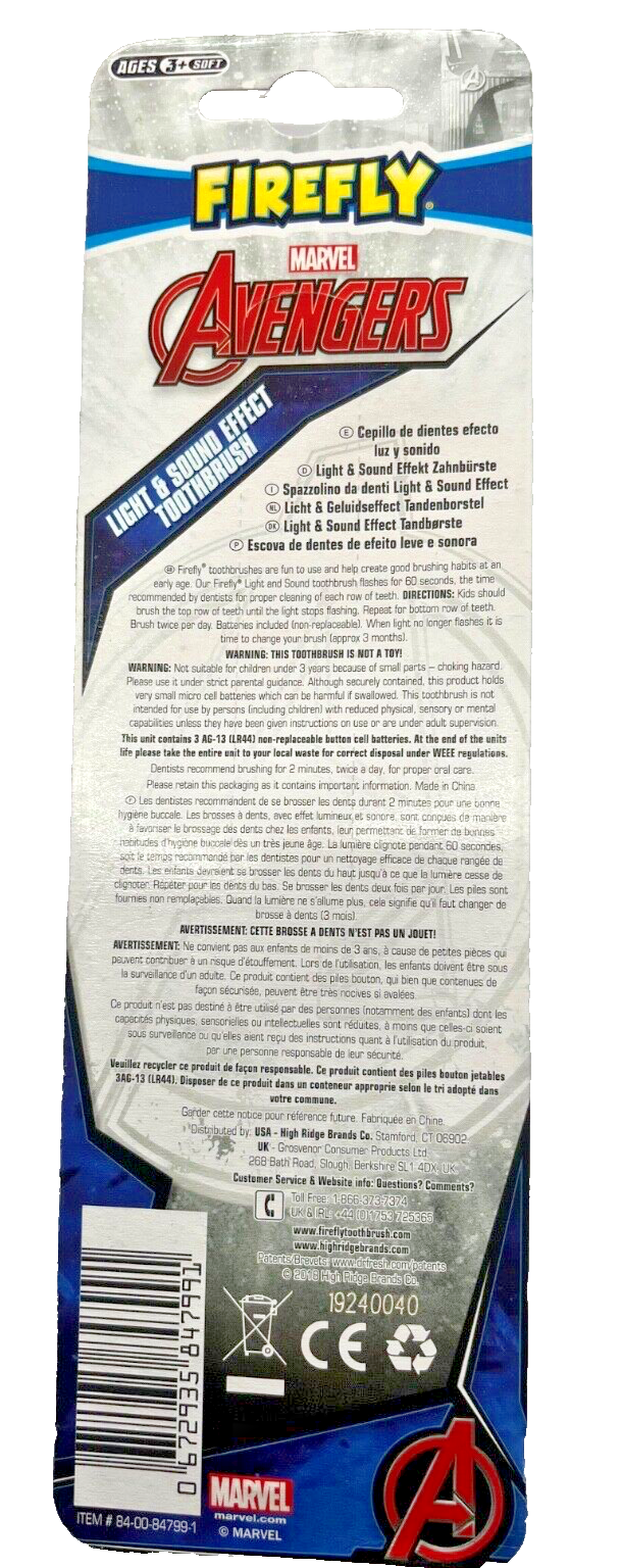 AVENGERS firefly battery operated toothbrush iron man LIGHT AND SOUND
