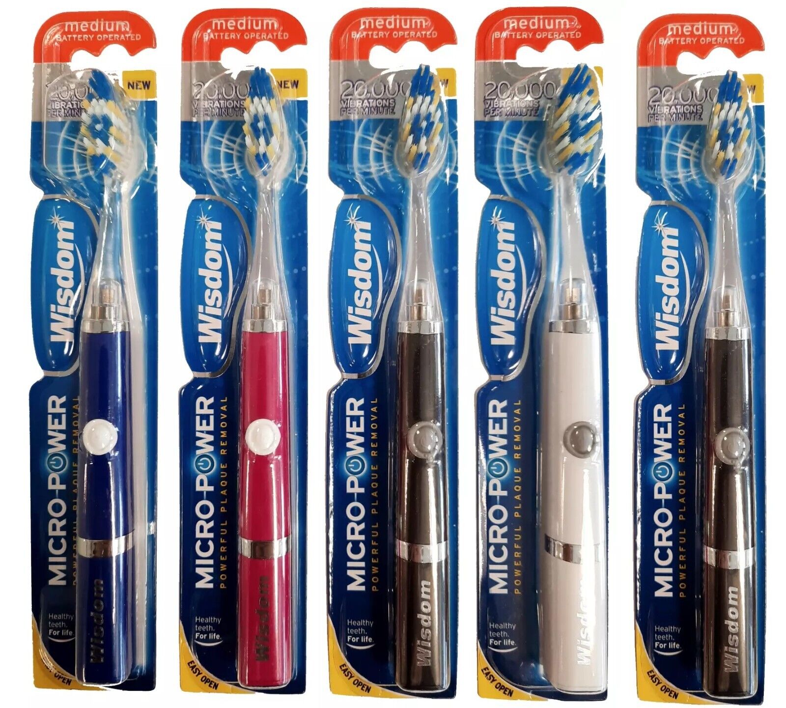 5 x Wisdom Micro Power Slim Medium Battery Toothbrush - Toothbrush Colours Vary