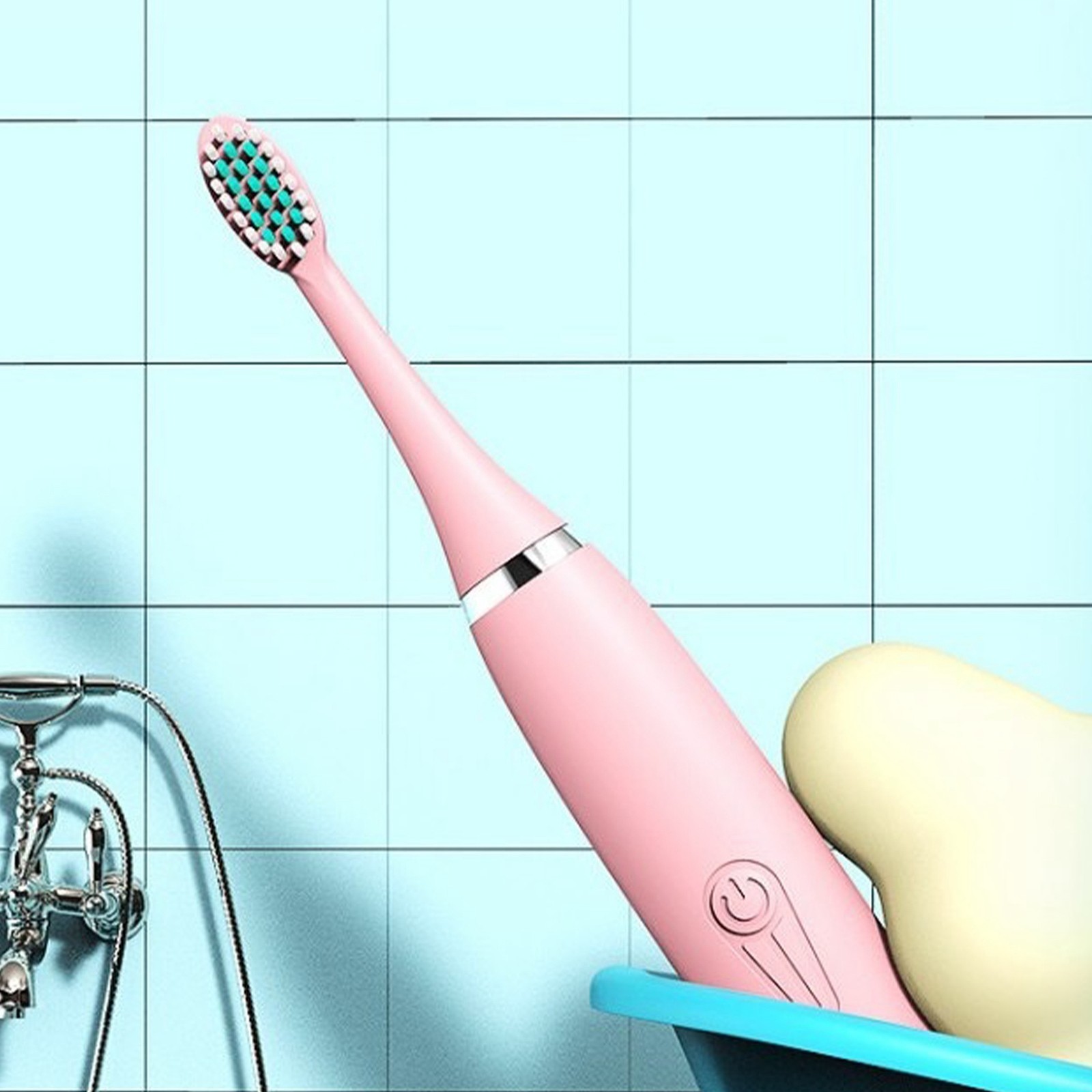 Kids Electric Toothbrush IP7 Battery Powered Toothbrush Cute Bunny Pink Elec SET
