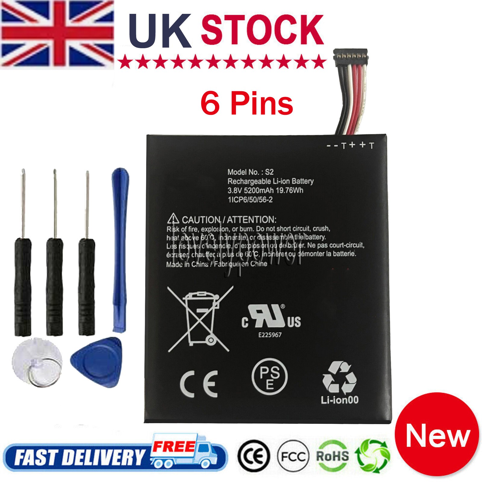 S2 (6-Pin) Battery for Ring, Video Doorbell 2nd Generation (6Cable Plug Only)