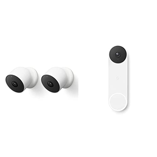 Google Nest Cam (Outdoor/Indoor, Battery) Security Camera - Smart Home WiFi Camera - Wireless, 2-Pack & Nest Doorbell (Battery) - Wireless Video Doorbell - Smart WiFi Doorbell Camera, Snow