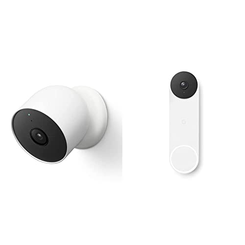 Google Nest Cam (Outdoor/Indoor, Battery) Security Camera - Smart Home WiFi Camera - Wireless & Nest Doorbell (Battery) - Wireless Video Doorbell - Smart WiFi Doorbell Camera, Snow
