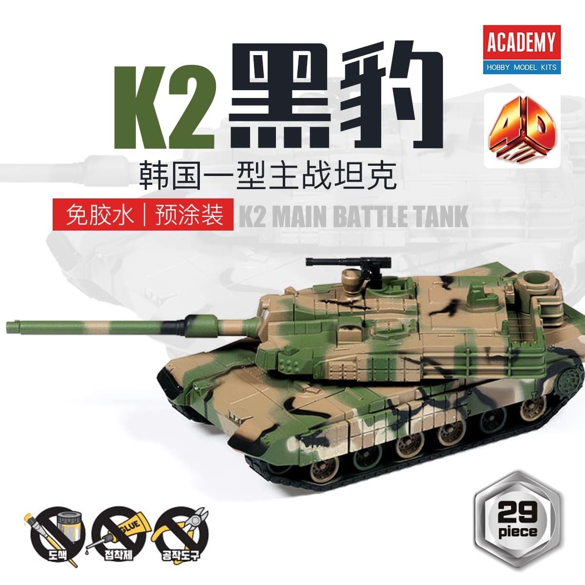 Academy AC15404 Korea (4D KIT) K1A2 Main Battle Tanks-High-Detail Model Kit