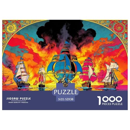 Pirate Ships Jigsaw Puzzles Puzzles for Adults Kids. 1000 Piece Battle at Sunset Great Gifts Challenge Toy Educational Game Home Decoration for Educational Games Gifts 52x38cm/1000pcs